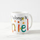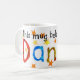 A white mug with a handpainted 'collage' design and the colorful, star-spangled inscription 'This mug belongs to Daniel'