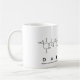 Daniela spelled out in amino acids as D A N I E L A (Aspartic acid Alanine Asparagine Isoleucine Glutamic acid Leucine Alanine) on a mug for the scientist in you.