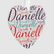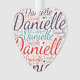 Danielle. Show and wear this popular beautiful female first name designed as colourful wordcloud made of horizontal and vertical cursive hand lettering typography in different sizes and adorable fresh colours. Wear your positive american name or show the world whom you love or adore. Merch with this soft text artwork is a great present, not only in womens history month, or birthday gift.