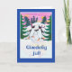 A fun Christmas Card with 'Merry Christmas' in Danish and two penguins ice-skating in a winter landscape, from a handpainted paper collage by Judy Adamson. The inside is left blank for your own message and please contact me through my store if you would like the front cover text changed.