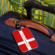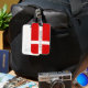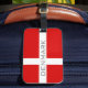 Danish flag of Denmark custom travel luggage Bag Tag. Personalised luggage tags for bags and suitcases. Elegant heritage gift idea for holiday travelers. Mark your baggage to prevent loss. Scandinavian pride design.