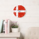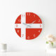The national flag of Denmark, Dannebrog, is red with a white Scandinavian cross that extends to the edges of the flag.