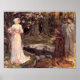A reproduction of "Dante and Beatrice" of 1915 by John William Waterhouse. This work reflects and captures a moment from the divine comedy when the author encounters his beloved Beatrice. This is an oil sketch from the last year in which the artist could work. In this year he became too ill with cancer to continue. Waterhouse often re-created scenes from the world of myth as did many of his fellow Pre-Raphaelites. Waterhouse was born to English painters in Rome who returned to England when he was five years old. He entered the Royal Academy of Art school in 1871 when he was aged 21 and within three years he had a successful painting. For the next forty years Waterhouse maintained his success and continued painting until his last illness made productin impossible in 1915. He died two years later. This masterpiece is presently in the Art Gallery of South Australia in Adelaide.