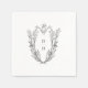 The simple yet classic design features an elegant and timeless crest monogram with florals and greenery surrounding the initials of the couple.