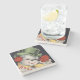 The coasters are gorgeous, a quality feel and heavy weight. They look like a precious archeological find. A rustic stone juxtaposed with a modern floral black and white print. I like the way the print goes slightly imperfect on the cut stone edges giving them a kind-of natural beauty.