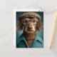 A charming, anthropomorphic dog dressed in a teal coat, brown knitted turtleneck, and patterned beret, complete with round glasses. This delightful portrait blends whimsy and elegance, making it perfect for animal lovers and art enthusiasts alike. Ideal for unique gifts, home décor, or statement fashion accessories.