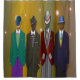 Elevate your bathroom game with undeniable swagger. This stylish shower curtain features four sharply dressed figures in bold, colourful suits, posed against a rich gold-toned background lit by soft glowing orbs. Each character brings unique flair—from emerald green to deep red—offering a fashionable, artful twist on urban cool. Ideal for trendsetters, art lovers, and those who appreciate standout design.