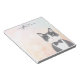 This personalised notepad features an adorable tuxedo cat dressed in a formal bow tie and suit, set against a soft pastel watercolor background with a subtle bokeh effect. The charming and whimsical design is perfect for cat lovers, pet owners, and those who enjoy stylish and playful stationery. Customise the text at the top for a unique touch, making it ideal for journalling, note-taking, or gifting.