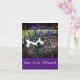 Image of one white iris flower among many purple irises with the words 'Dare to be Different' on a dark purple background. Blank inside for your message.