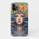This unique piece features a captivating woman's face, adorned with flowing hair and delicate, organic patterns and flowers that seamlessly blend with the timeless elegance of the Art Nouveau movement. All of this in a delightful green tourmaline background.