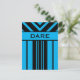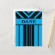 Inspire a friend to strive with a provocative postcard featuring a bold vibrant blue and black geometric pattern featuring the word "dare." Dare them to think big, to be great, to take a dancing class... it's up to you.