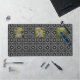 However, this dark, abstract and intricate geometric design does make the colour in the images "pop" and stand out. A perfect blend of style and functionality for your workspace, the pattern being both modern and a bit retro at the same time.