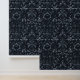 Dark Academia Dark Blue Decorative Fleur Wallpaper