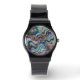 Dark Amethyst Purple Teal Blue Gold Marble Pattern Watch