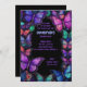 This bold and vibrant birthday invitation features a dazzling array of neon-inspired butterflies in shades of purple, pink, and blue-green against a striking black background. Perfect for a fun and energetic celebration, this invite sets the tone for a night to remember!