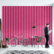 Vertical dark and light Pink Stripes divided by a thin line of black and white stripes lines surface pattern design