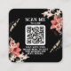 This customisable QR code enclosure card is both elegant and functional, perfect for modern weddings or events that require a streamlined RSVP process. Set against a deep black background, the card features a bold “SCAN ME” message above the QR code, making it clear and easy for guests to use. Soft floral accents in shades of blush, cream, and green frame the card, adding a romantic touch that complements the dark, sophisticated design. Below the QR code, instructions guide guests to scan with their smartphone for RSVP or additional event details. This enclosure card is ideal for couples looking to blend convenience with a stylish, memorable design.