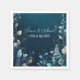 A floral wedding napkins with the colours of dark teal and aquamarine. There's a beautiful frame of flowers and a gold frame that goes around. Perfect for all sort of wedding themes. The design is very rich and beautiful.
