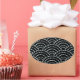 Inspired by Japanese wave patterns, seigaiha, and the elemental magic found in fantasy worlds, this design represents darkness, with bright, pale blues arcing around deep blacks like the light at the edge of the event horizon as it is being sucked into the ultimate dark of a black hole.