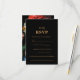 Dark Black and Red RSVP Wedding Invitation Card. Copper coloured text fully customisable. Black background colour can be changed. Dark Floral background on the back of card. Moody, elegant and modern.
