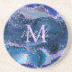 This coaster features an elegant and glamourous dark blue agate marble background with faux blue glitter accents. The monogram combines handwritten script and modern sans serif fonts for a classy and sophisticated look. This will make the ideal gift as it can be customised with a name and initial. The sequins and distressed texture creates the perfect blend of chic and grunge.
