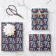 Dark Blue and Red Geometric Triangles Pattern Wrapping Paper Sheet