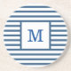 Dark Blue and White Stripes Custom Monogram Coaster