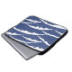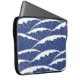 Dark blue and white electronics bag with simple, linear waves pattern. Inspired by traditional japanese patterns.