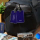 This modern luggage tag design features a rich dark blue background, with your initials in bold white text for a look that is simple and stylish, yet professional.