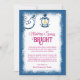 Dark Blue, Berry Pink Nostalgic Bell Holiday Card