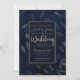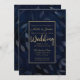 Dark Blue Botanical Leaves Modern Chic Wedding Invitation