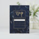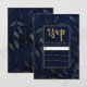 Dark Blue Botanical Leaves Modern Wedding RSVP Card