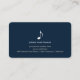 A very deep blue professional card with musical note symbol.