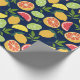 Dark Blue Citrus Lemon Orange Tangerine Pattern Wrapping Paper