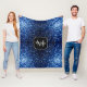 Dark Blue deep shiny faux glitter sparkle Monogram Fleece Blanket