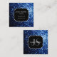 Dark Blue deep shiny faux glitter sparkle Monogram Square Business Card