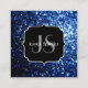 Personalise and customise elegant faux sparkly square business card with your initial and name. Beautiful glamourous blue shiny glitters sparkles.