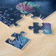 Dark Blue Design with Turquoise & Pink Leaves Jigsaw Puzzle