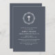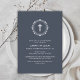 Dark Blue Elegant Classic Cross Wreath Baptism Invitation