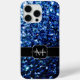 Dark blue faux glitter sparkles Monogram iPhone 15 Case. Personalise Sparkly iPhone case with your initial and name. Beautiful girly glamourous blue shiny glitters sparkles. Photo of blue sparkles not actual glitter!