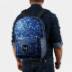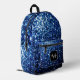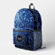 Dark blue faux glitter sparkles Monogram Printed Backpack. Cool fashion accessory bag for her. Beautiful girly glamourous blue shiny glitters sparkles design. Photo of sparkles, not real glitter! Create a unique and personalised backpack with a custom touch! Modern monogram with your initial and your name for that extra personal flair.