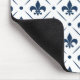 Dark blue Fleur De Lis pattern on white background Mouse Pad