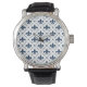 Dark blue Fleur De Lis pattern on white background Watch