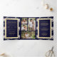 Dark Blue Floral All in One Gold Indian Wedding Tri-Fold Invitation