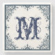 Dark Blue Floral Paisley Frame Monogram Stone Coaster