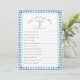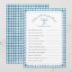 Editable game title and text questions for baby shower or bridal shower. Features a hand painted bow with gingham plaid denim blue frame and backer.