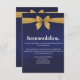 Stunning dark blue background tied with a gold bow image. Stationery is all printed, no actual ribbon. Personalise our gorgeous stationery with your event details easily and quickly, simply press the customise it button. Coordinating backside is included. Matching items to complete your event collection are available in our Zazzle store!
