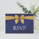 Dark Blue Gold Bow RSVP Card