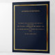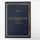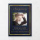 An elegant tri-fold program. A dark blue background, a faux gold frame and space for your photo. Personalise and add name, dates and your text.