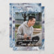 Unique and trendy congratulations graduate announcement and celebration party invitation card, framed with a stylish teal blue, purple mauve and grey coloured abstract brushstrokes background. With room to customise or personalise with a photo, the name of the graduate, class graduation year, high school, future college or university name, and celebration party event information. Let the family, friends and neighbours know there is a happy graduate ready to conquer the world, and invite everybody to come celebrate the happy event with you!